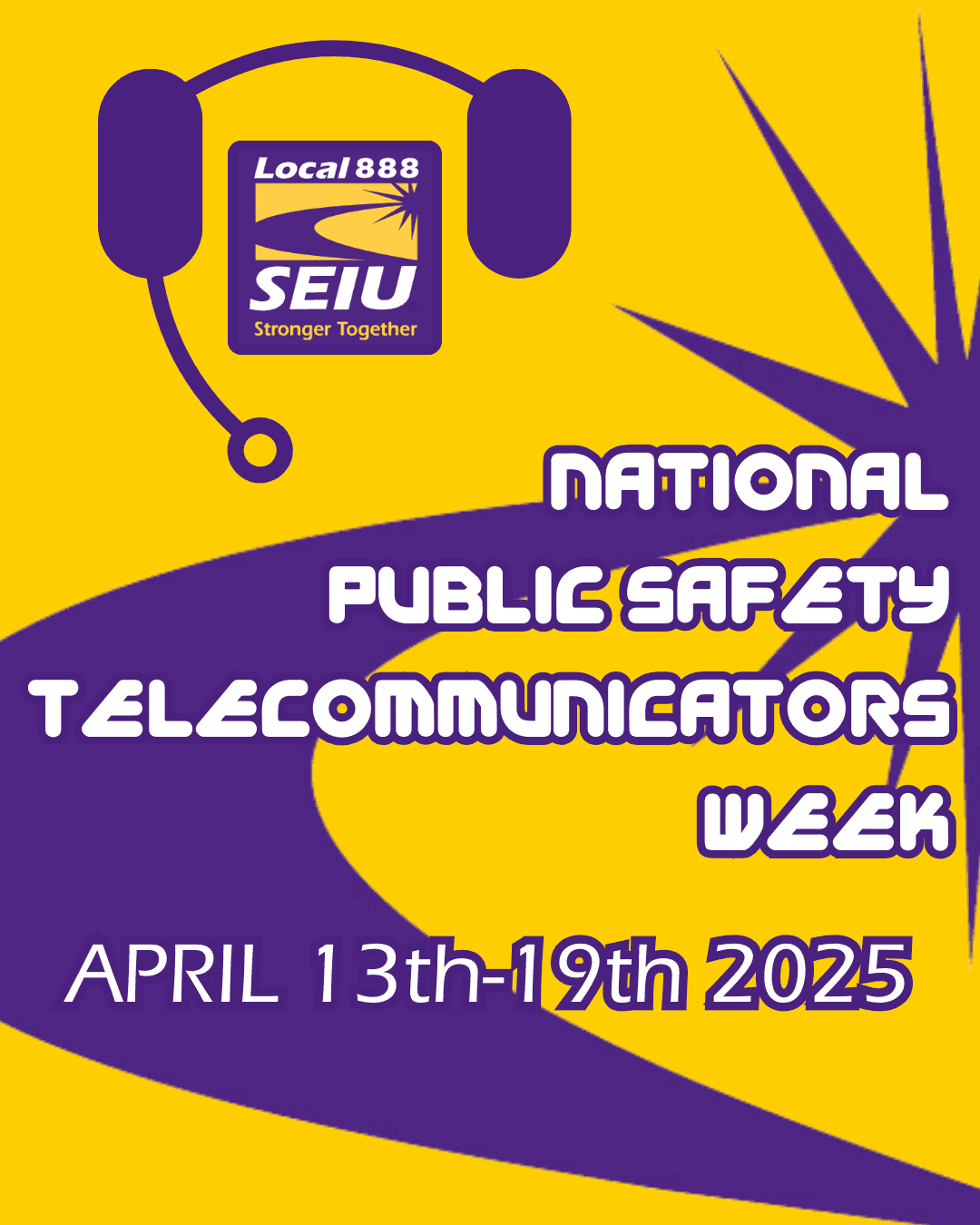 This week, SEIU Local 888 proudly salutes our public safety telecommunicators—the calm in the chaos, the first link in emergency response, and the lifeline for our communities. Whether dispatching help or providing critical support during crisis situations, your work is essential, powerful, and deeply appreciated. 💜💛