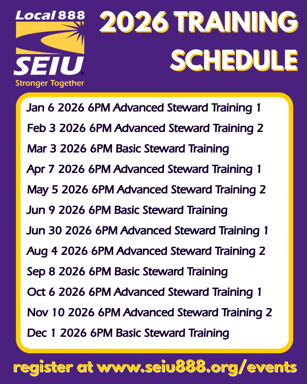 SEIU Local 888 2026 Training Schedule